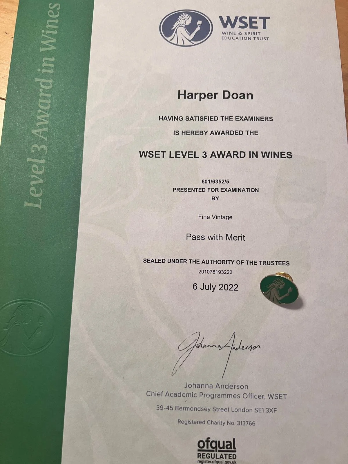 I also have level 3 certification at Wine & Spirit Education Trust (WSET) program from Toronto.